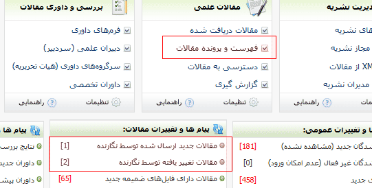 هر نوع تغییری در پایگاه (ثبت نام، تماس، دریافت مقاله، دریافت نظر داور و ...) هم در بخش ویژه ای نمایش داده می شود.